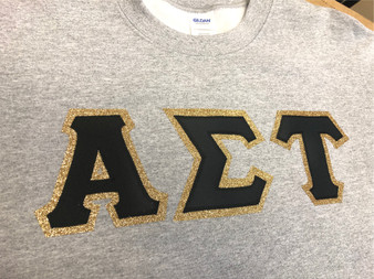 Sale Glitter & Twill Greek Lettered Crewneck Sweatshirt One-layer of custom cut Glitter Greek Letters in your choice of glitter color, and a background laye… Now $33.99 Was $35.99 Choose Options